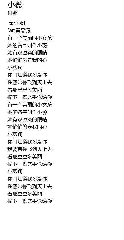 | [00:28.855] | yǒu yí gè měi lì de xiǎo nǚ hái |