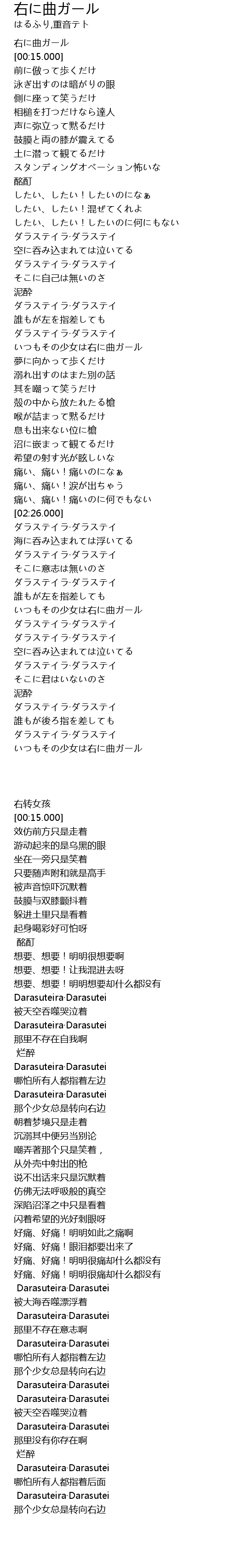| [03:18.000] | いつもその少女は右に曲ガール |