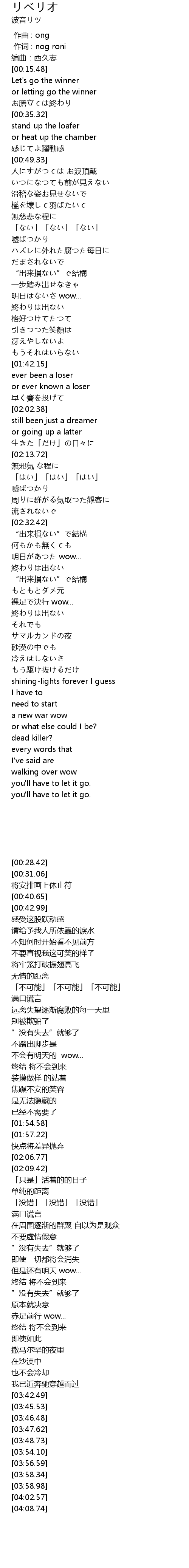 | [00:28.42] | Let's go the winner |