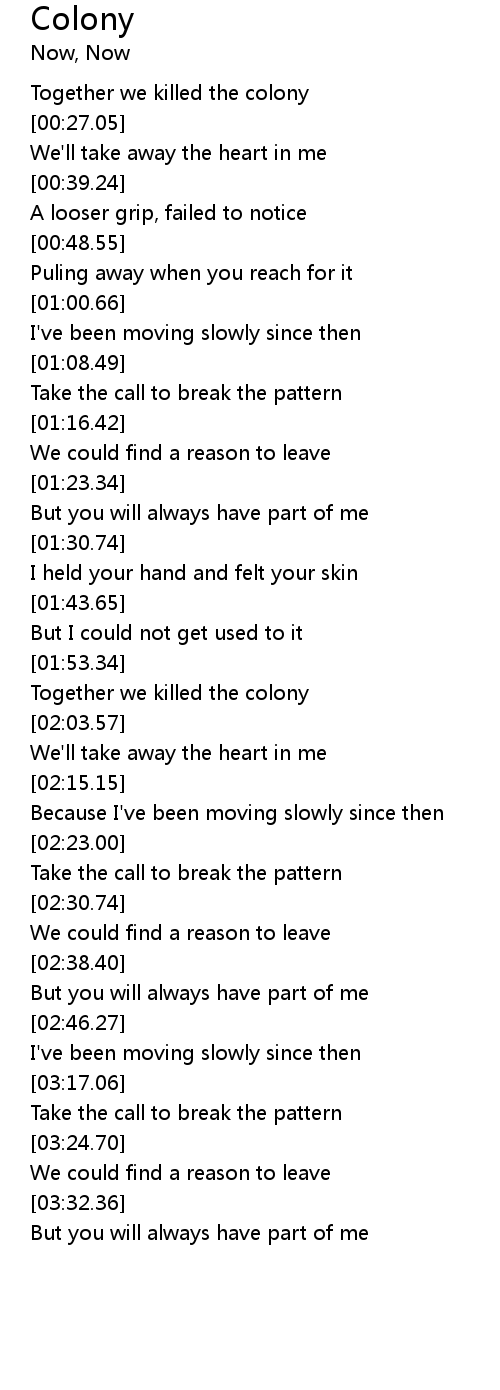 | [01:55.73] | Together we killed the colony |