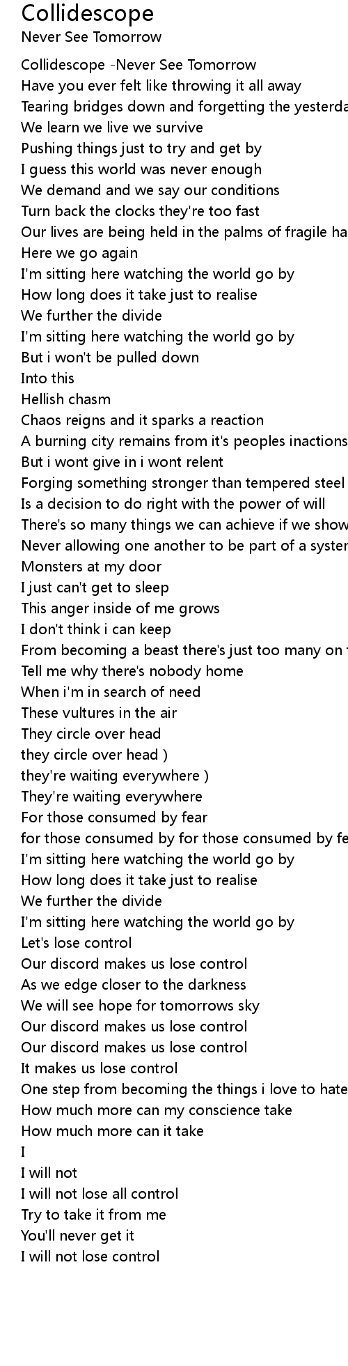 | [00:00.255] | Collidescope -Never See Tomorrow |