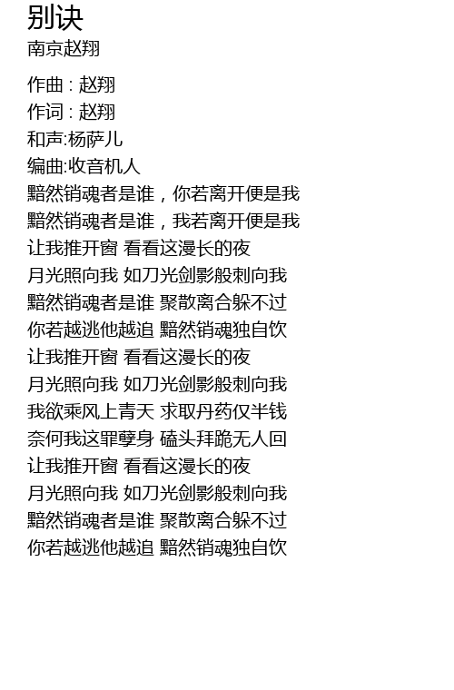 | 作词 : 赵翔 | |
