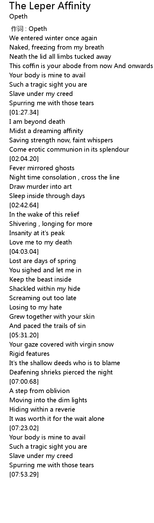 | Song | The Leper Affinity |