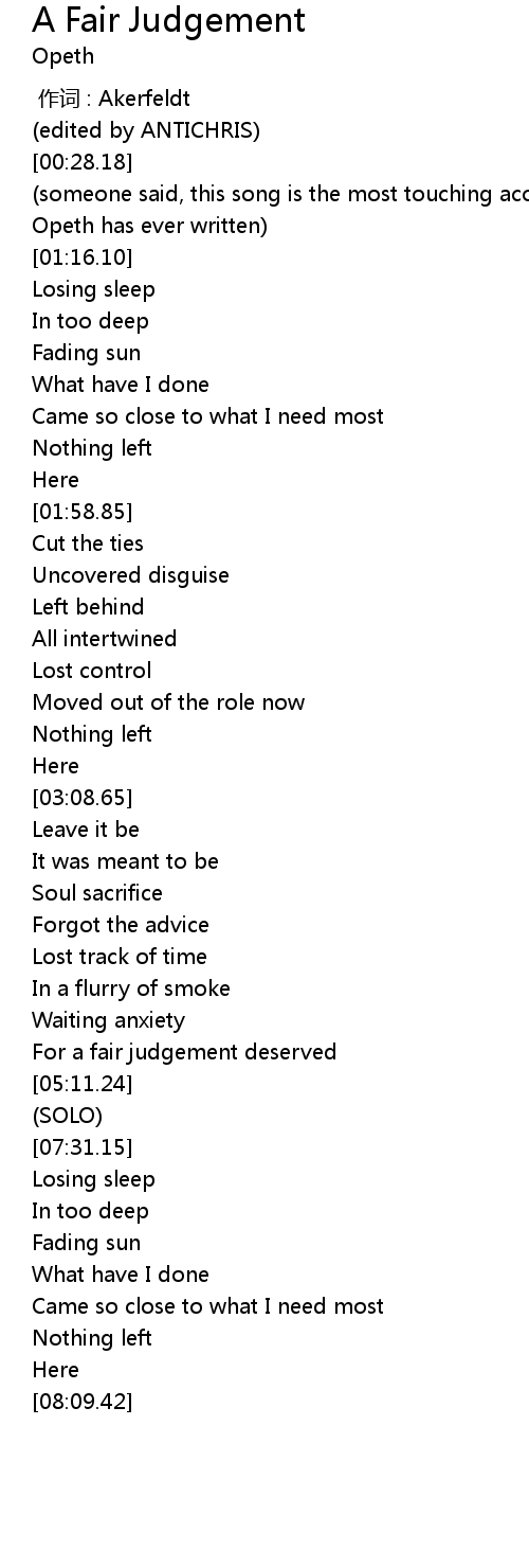 | [00:48.81] | someone said, this song is the most touching acoustic track that Opeth has ever written |