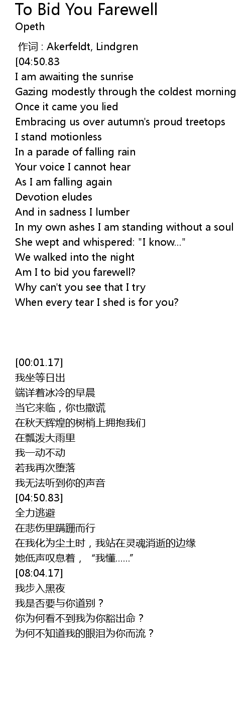 | [00:00.00] | zuò cí : Akerfeldt, Lindgren |