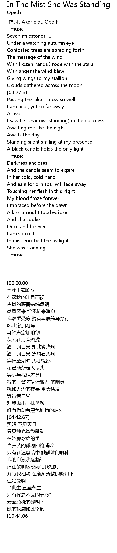 | [00:00.00] | 作词 : Akerfeldt, Opeth |