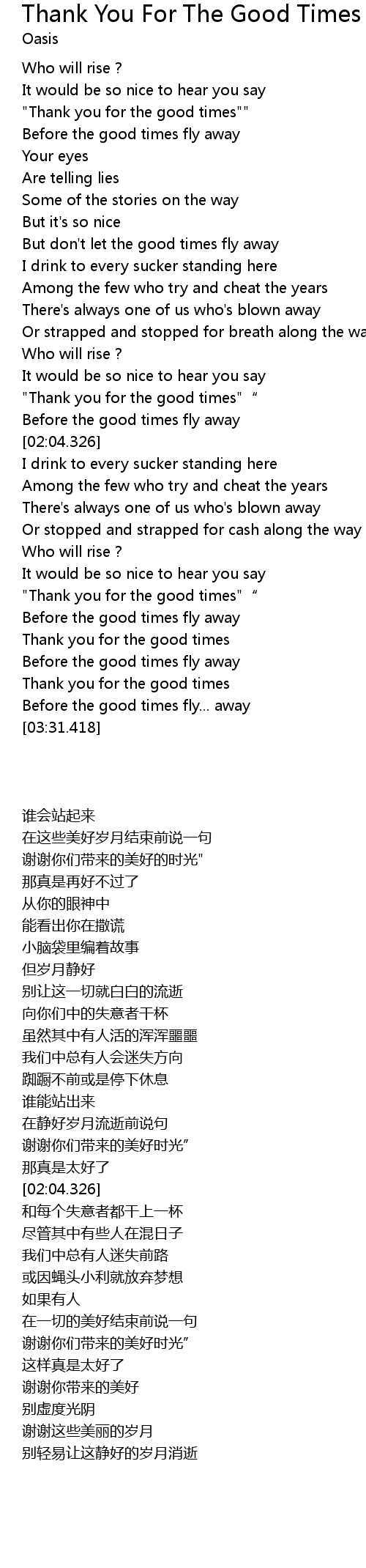 | [03:03.682] | " Thank you for the good times"" |