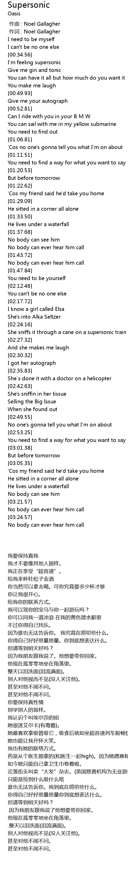 | [00:00.00] | 作曲 : Noel Gallagher |