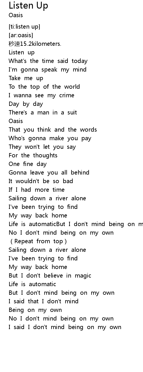 | [01:37.92] | Life is automaticBut I don't mind being on my own |