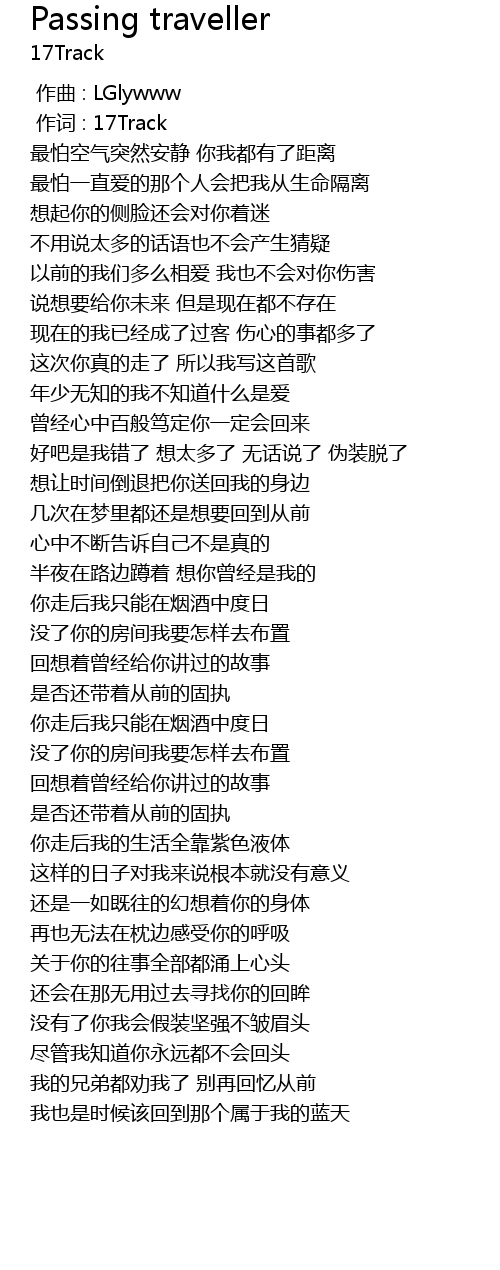 | [00:38.84] | 现在的我已经成了过客 伤心的事都多了 |