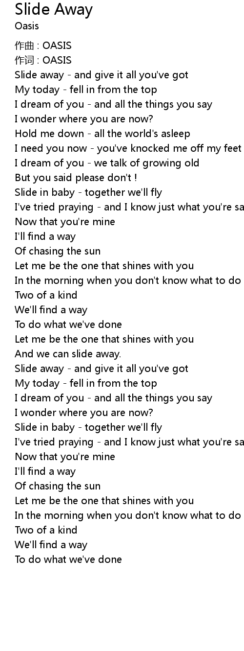 | Song | Slide Away |