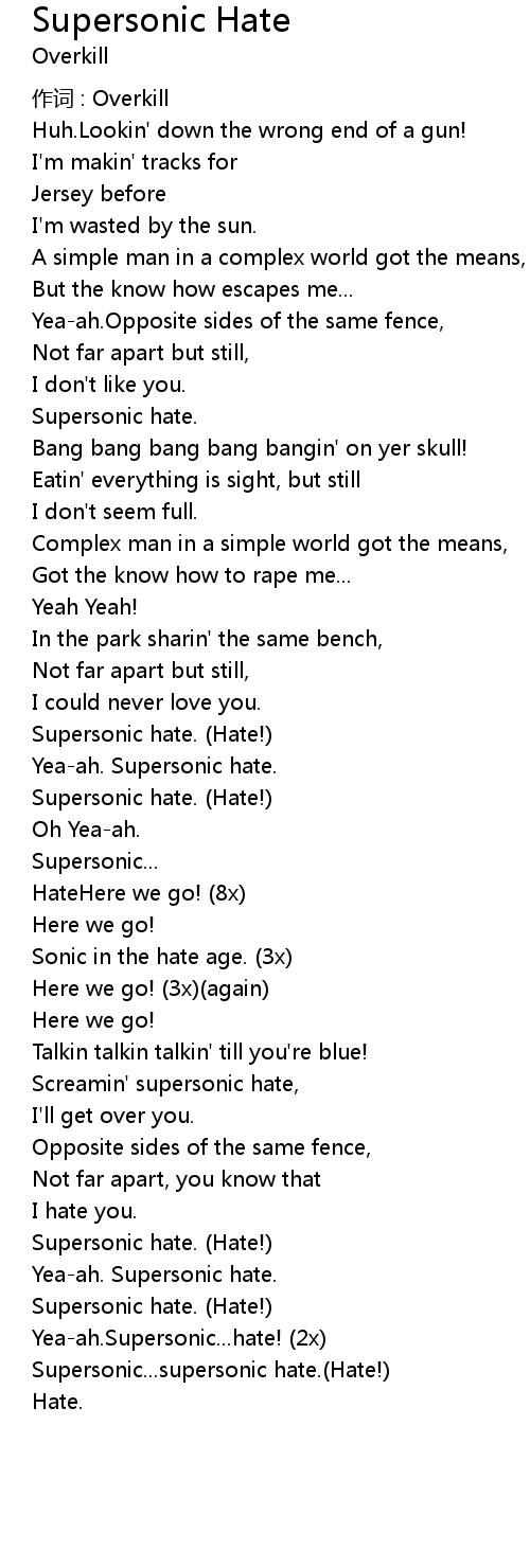 | Supersonic...supersonic hate.(Hate!) | |
