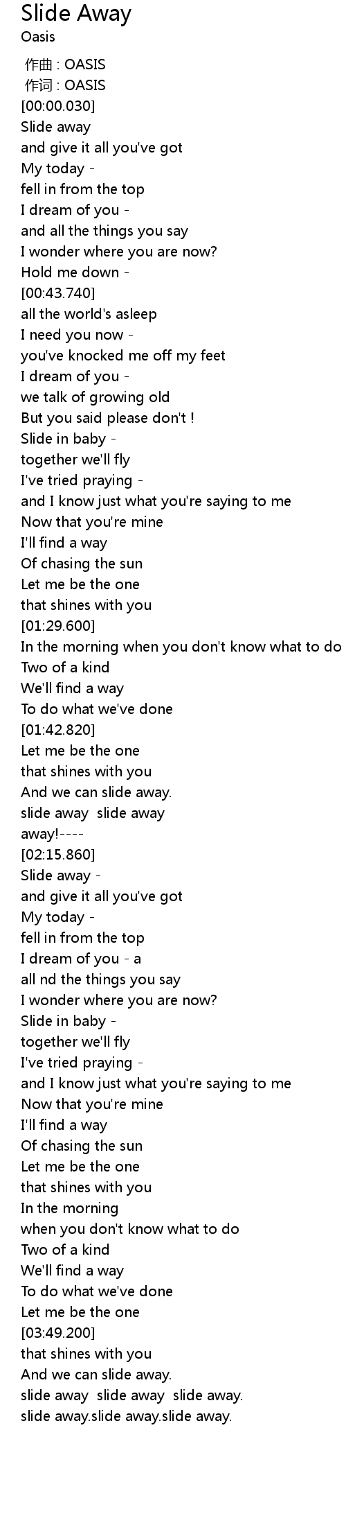 | [04:18.660] | slide away.slide away.slide away. |