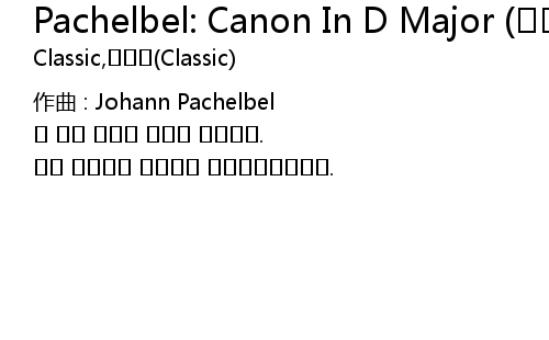 | Song | Pachelbel: Canon In D Major (파헬벨: 캐논 변주곡) (피아노, 자장가, 태교, 수면, 명상, 휴식) |