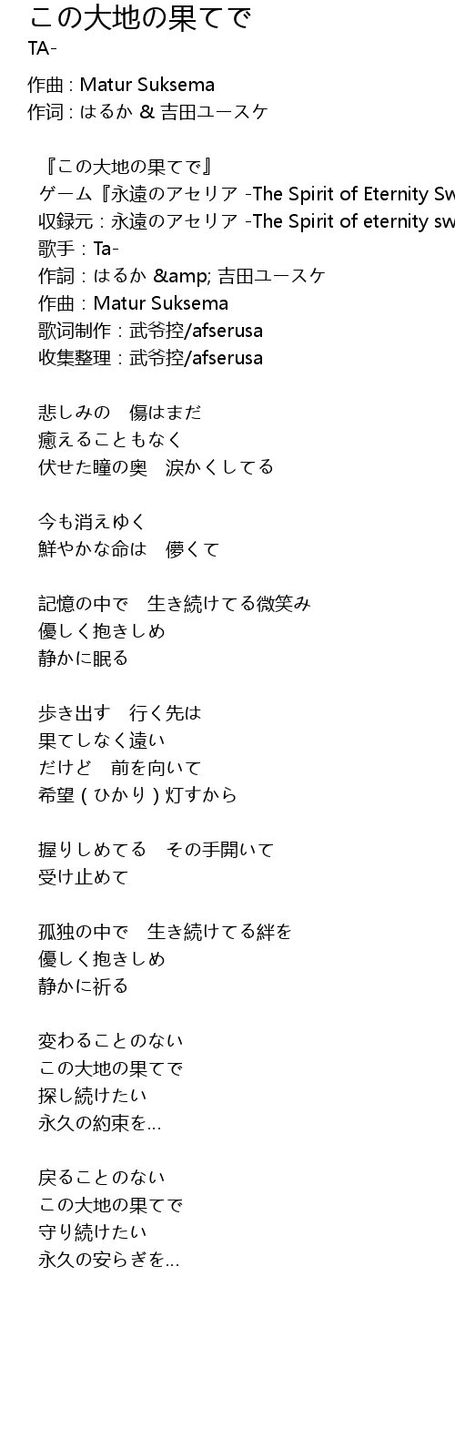 | Song | この大地の果てで |