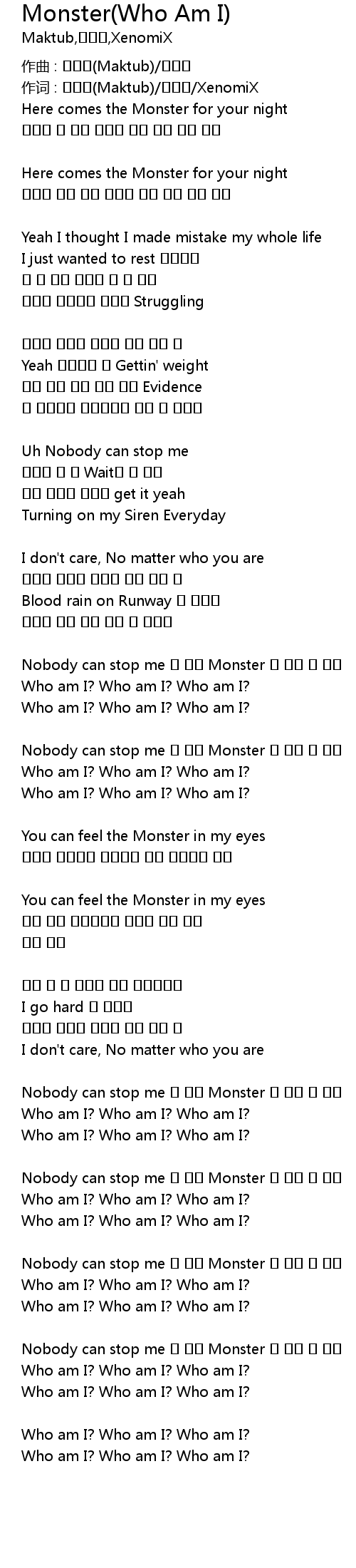| Nobody can stop me 내 안의 Monster 날 가둘 순 없어 | |