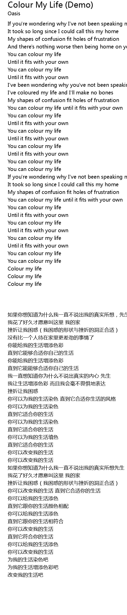 You can colour my life until it fits with your own |