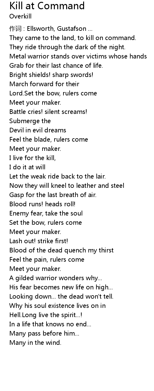 | Song | Kill at Command |