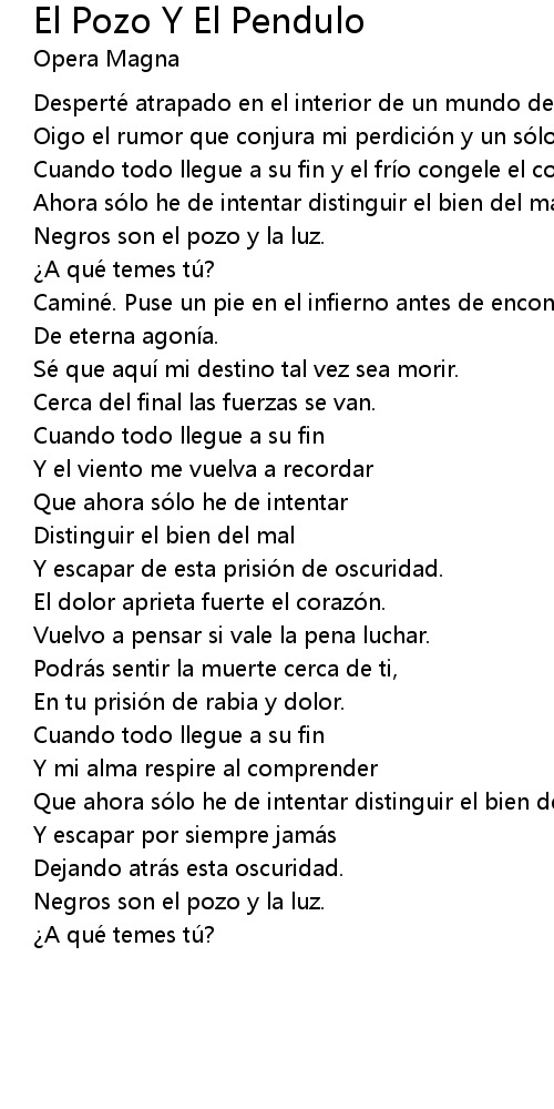 | Oigo el rumor que conjura mi perdicio n y un so lo lamento: mi propia voz. | |