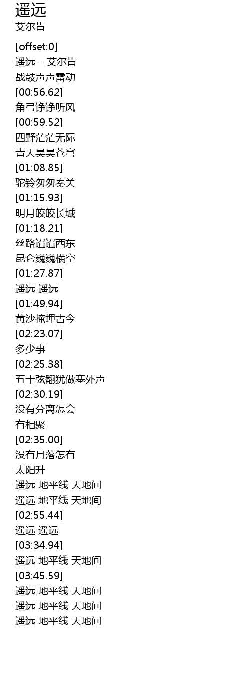 | [00:02.53] | 遥远 – 艾尔肯 |