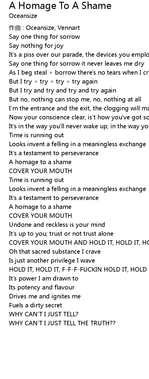| Song | A Homage To A Shame |