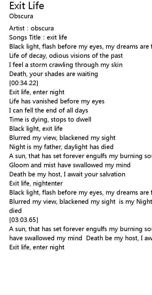 | [00:44.16] | Exit life, enter night |