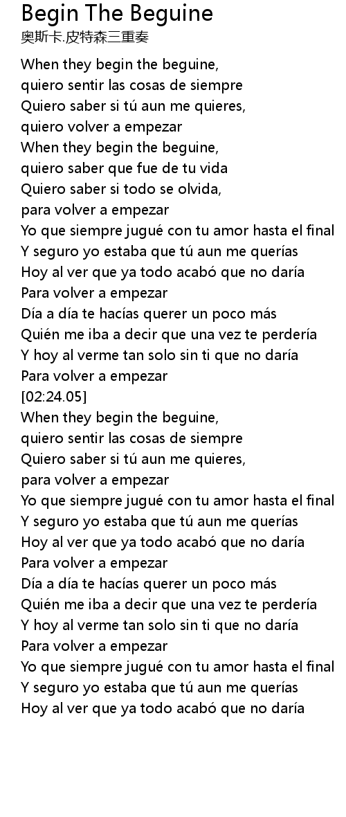 | [02:37.24] | When they begin the beguine, |