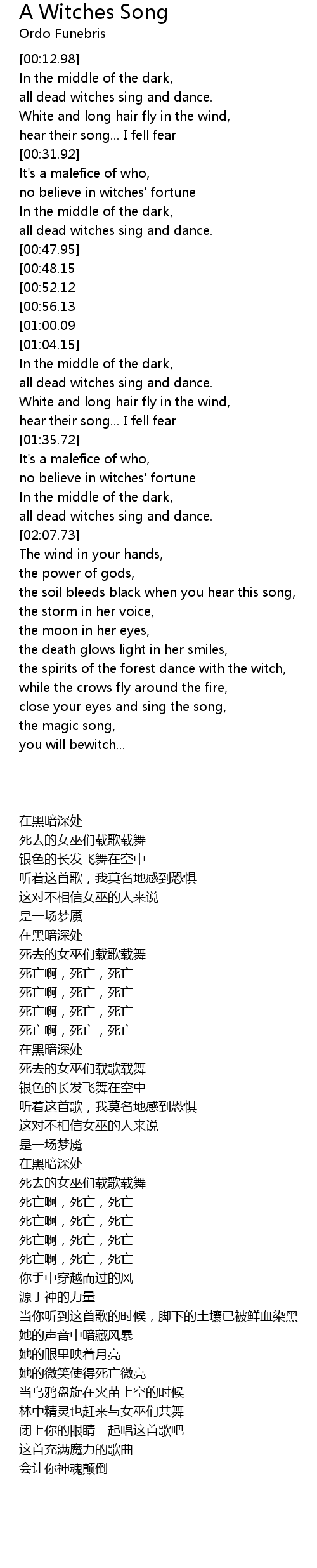 all dead witches sing and dance. |