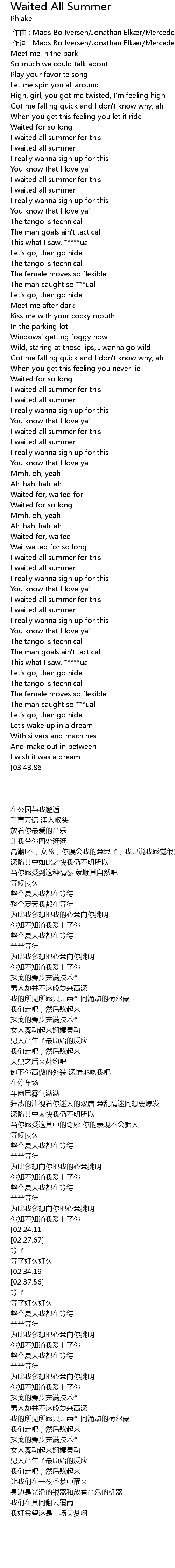 | [02:46.37] | I waited all summer |