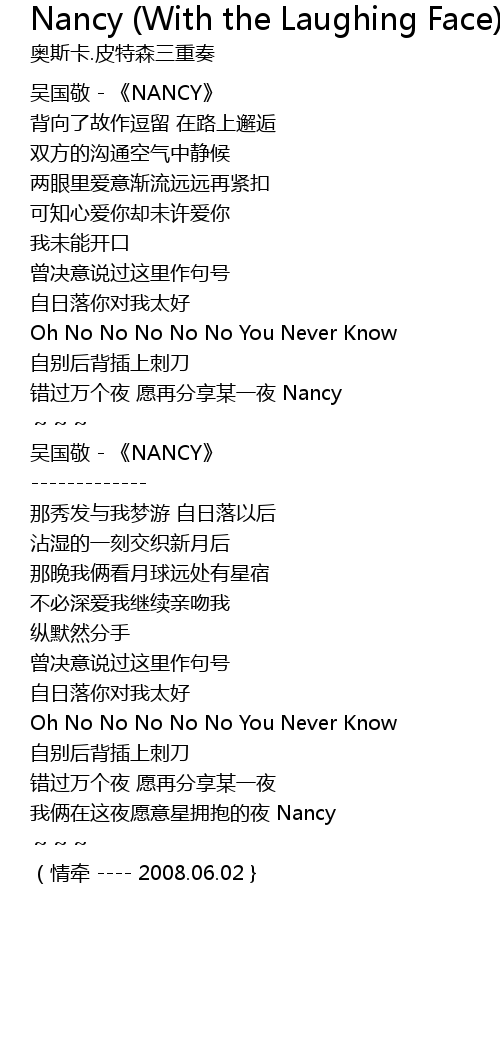 | 错过万个夜 愿再分享某一夜 Nancy | |