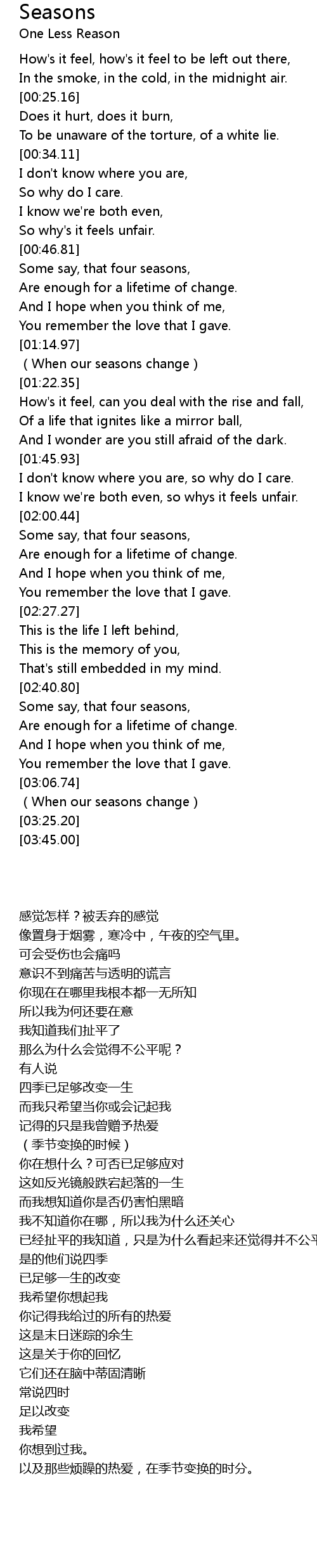| [01:54.32] | I know we' re both even, so whys it feels unfair. |