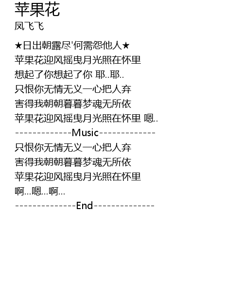 | [00:19.94] | 苹果花迎风摇曳月光照在怀里 |
