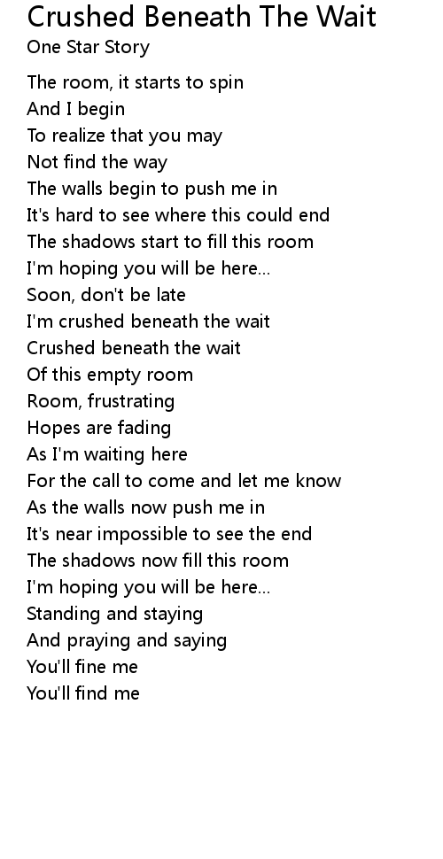I'm crushed beneath the wait |