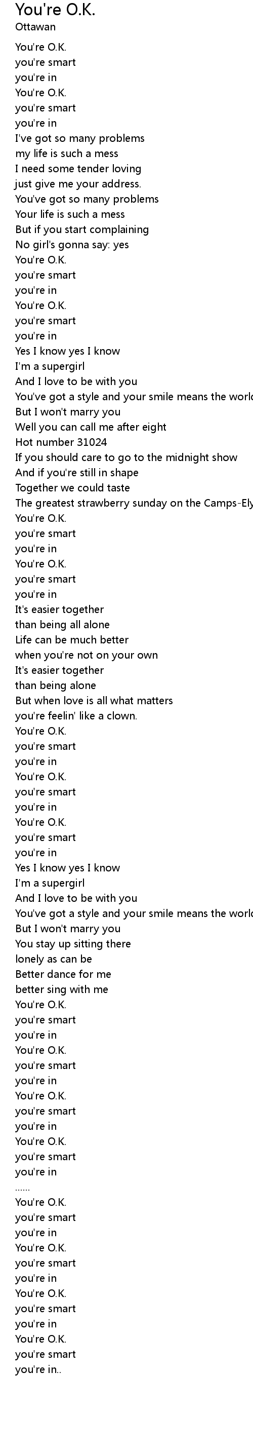 | [00:14.87] | You're O.K. |