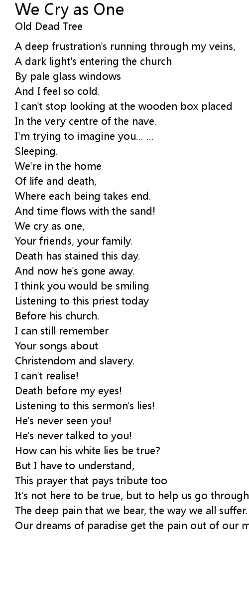 We cry as one, |