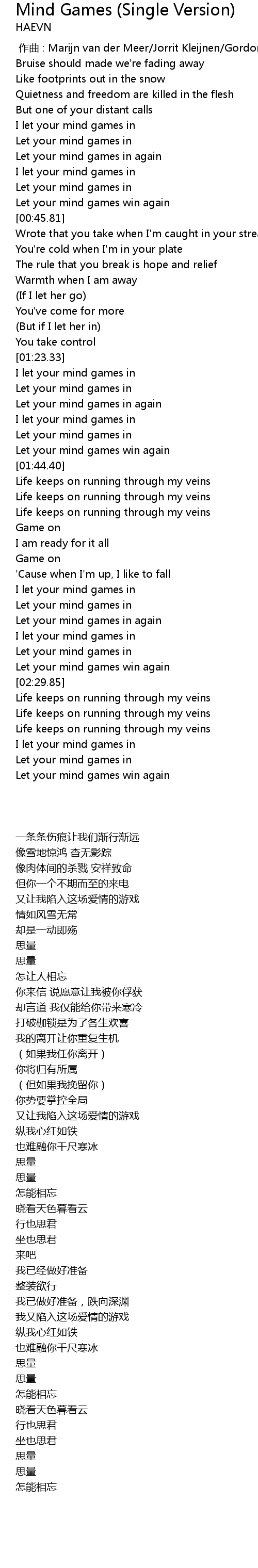| [01:38.91] | Let your mind games win again |