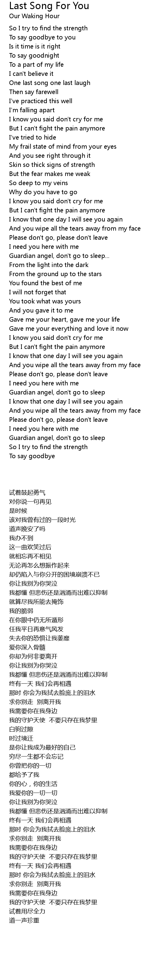 | [01:39.43] | I know you said don't cry for me |
