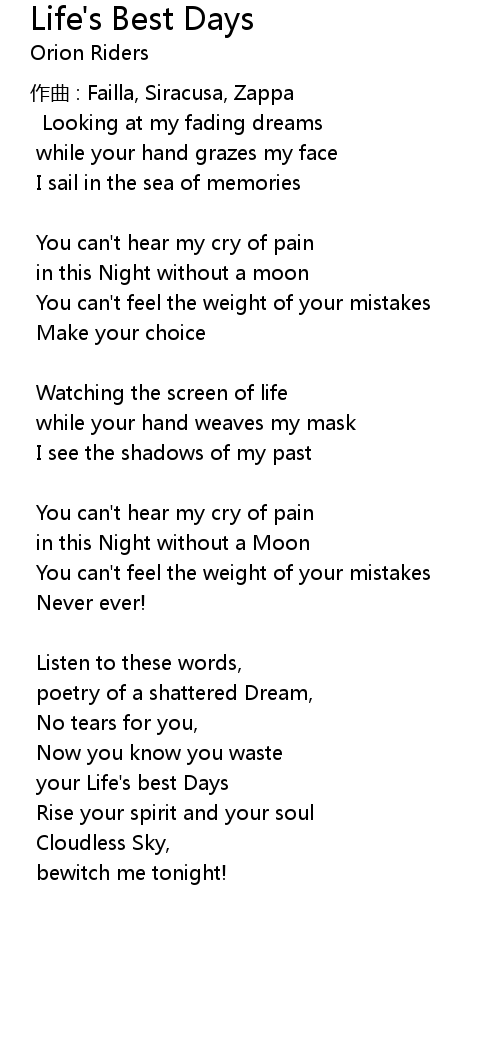 | your Life's best Days | |