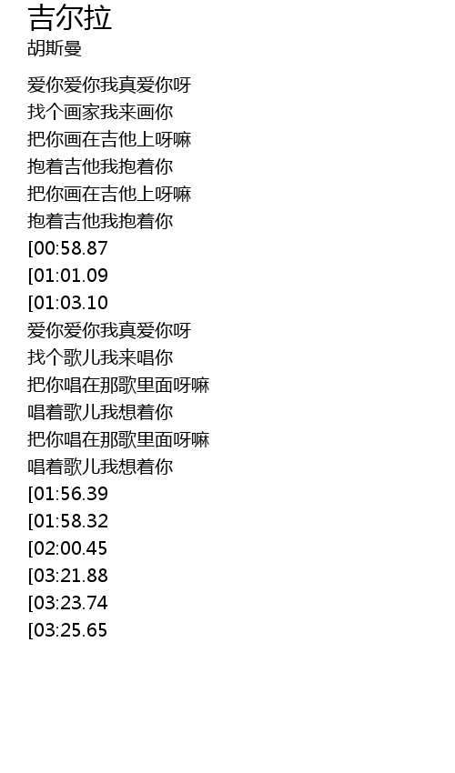 | [02:37.13][01:03.10][00:55.99] | 抱着吉他我抱着你 |