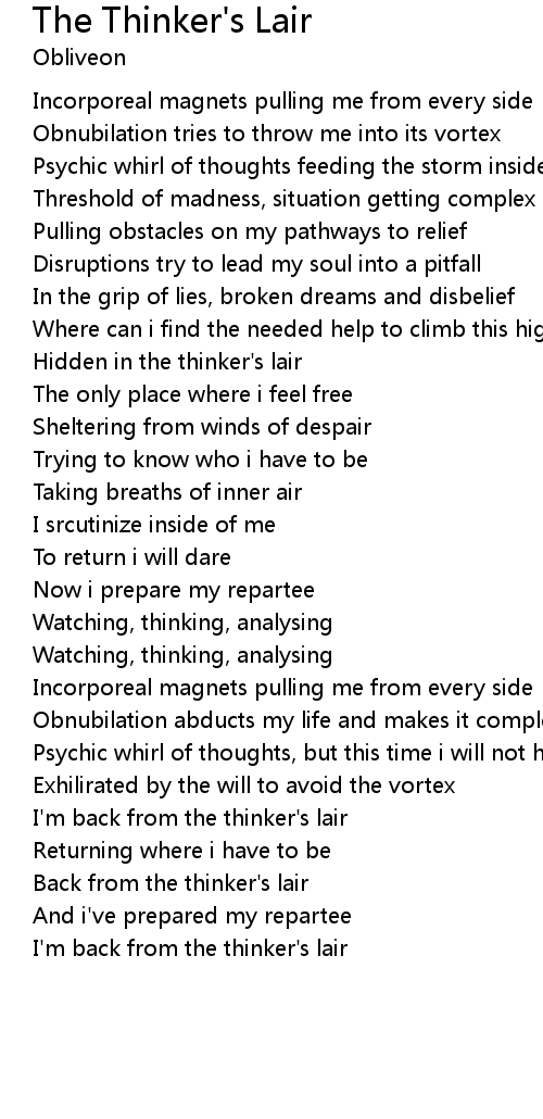 | I'm back from the thinker's lair |