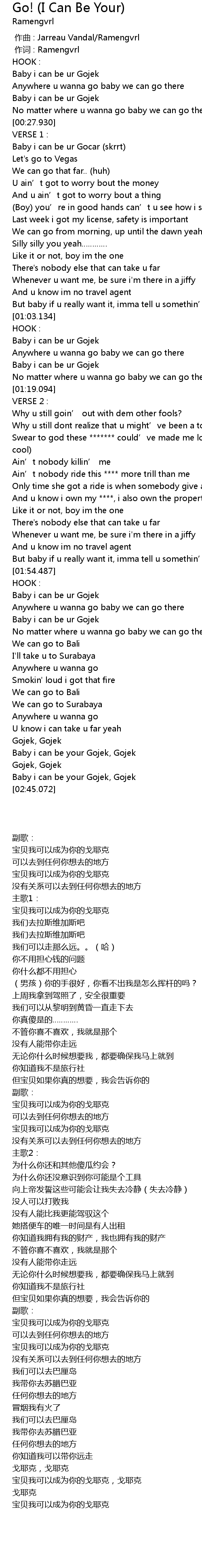 | [02:31.360] | Baby i can be your Gojek, Gojek |