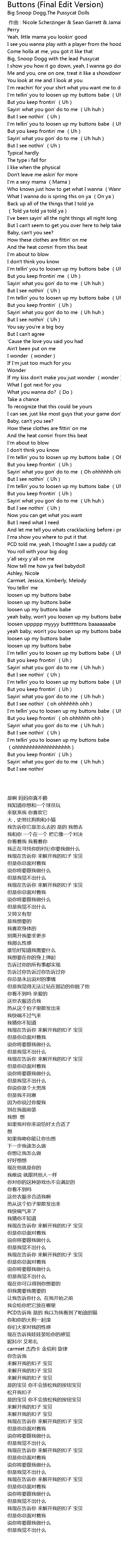 | [01:15.08] | I'm tellin' you to loosen up my buttons babe (Uh huh) |
