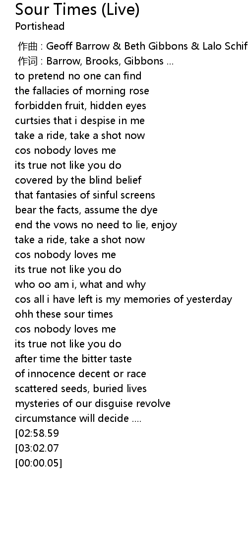 | [01:42.94] | ohh these sour times |