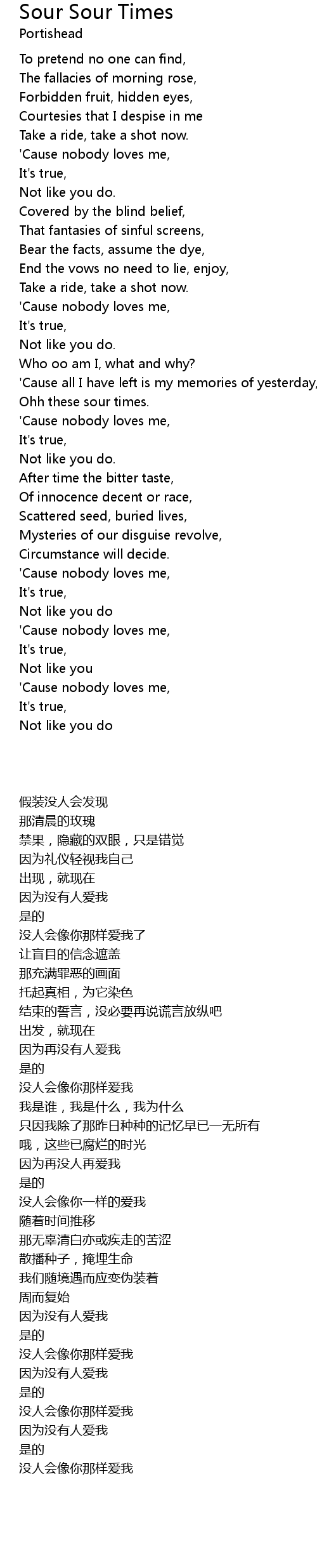 | [01:42.59] | Ohh these sour times. |