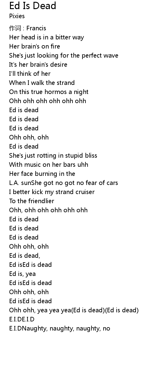 | Ohh ohh, yea yea yea Ed is dead Ed is dead | |