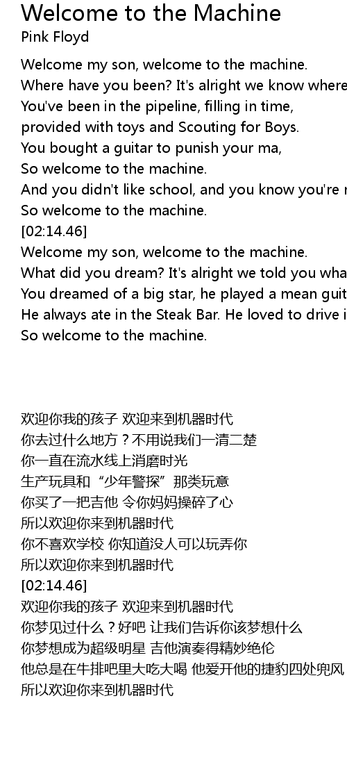 Welcome my son, welcome to the machine. |