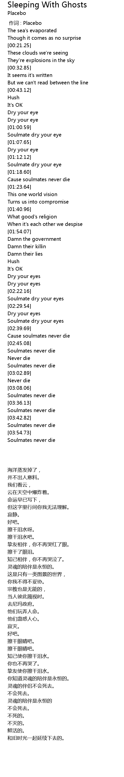 | [00:00.00] | 作词 : Placebo |