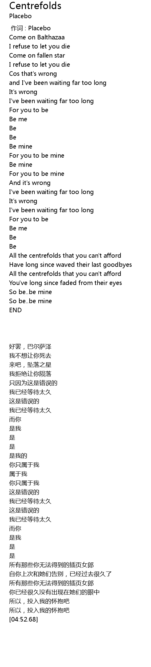 | [00:00.00] | 作词 : Placebo |