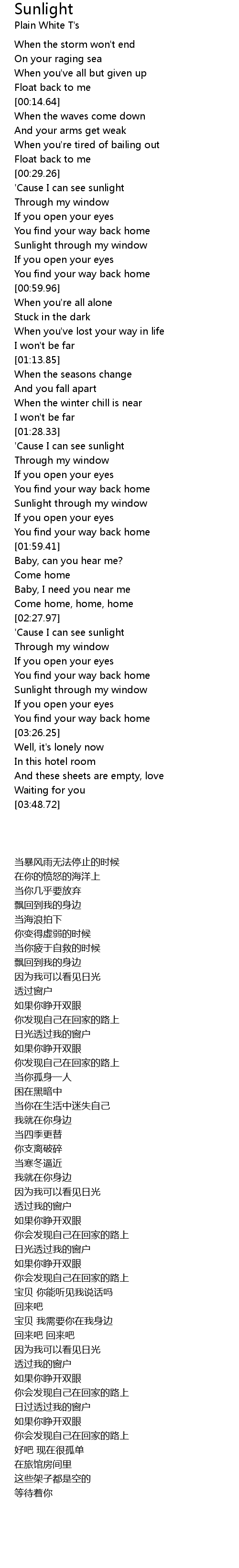 'Cause I can see sunlight |