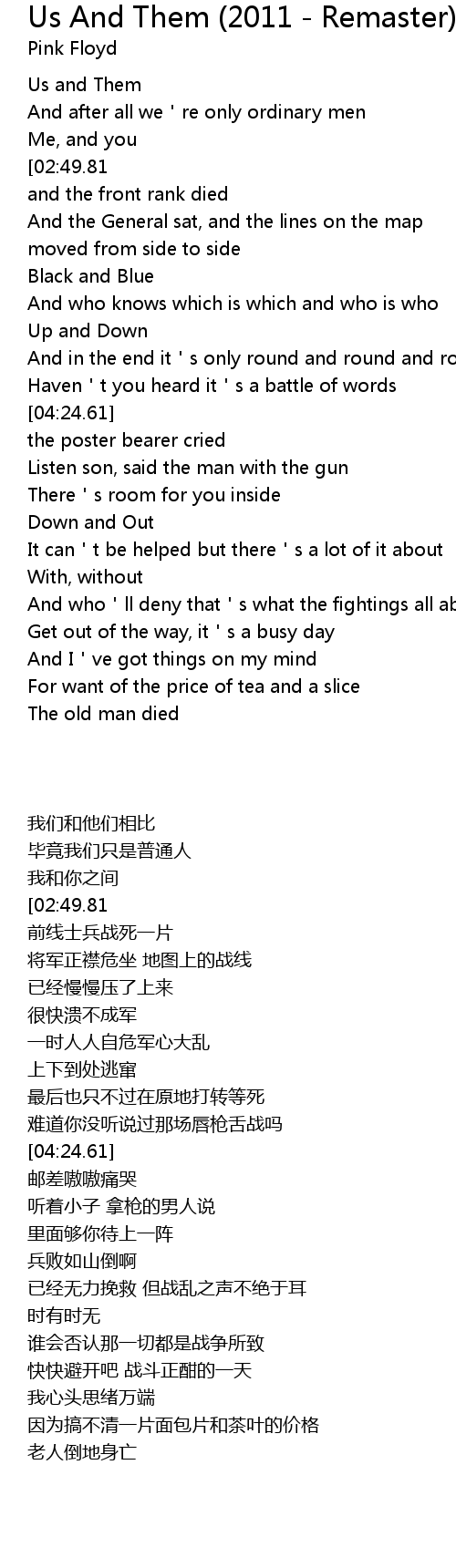 | [01:43.03] | Us and Them |